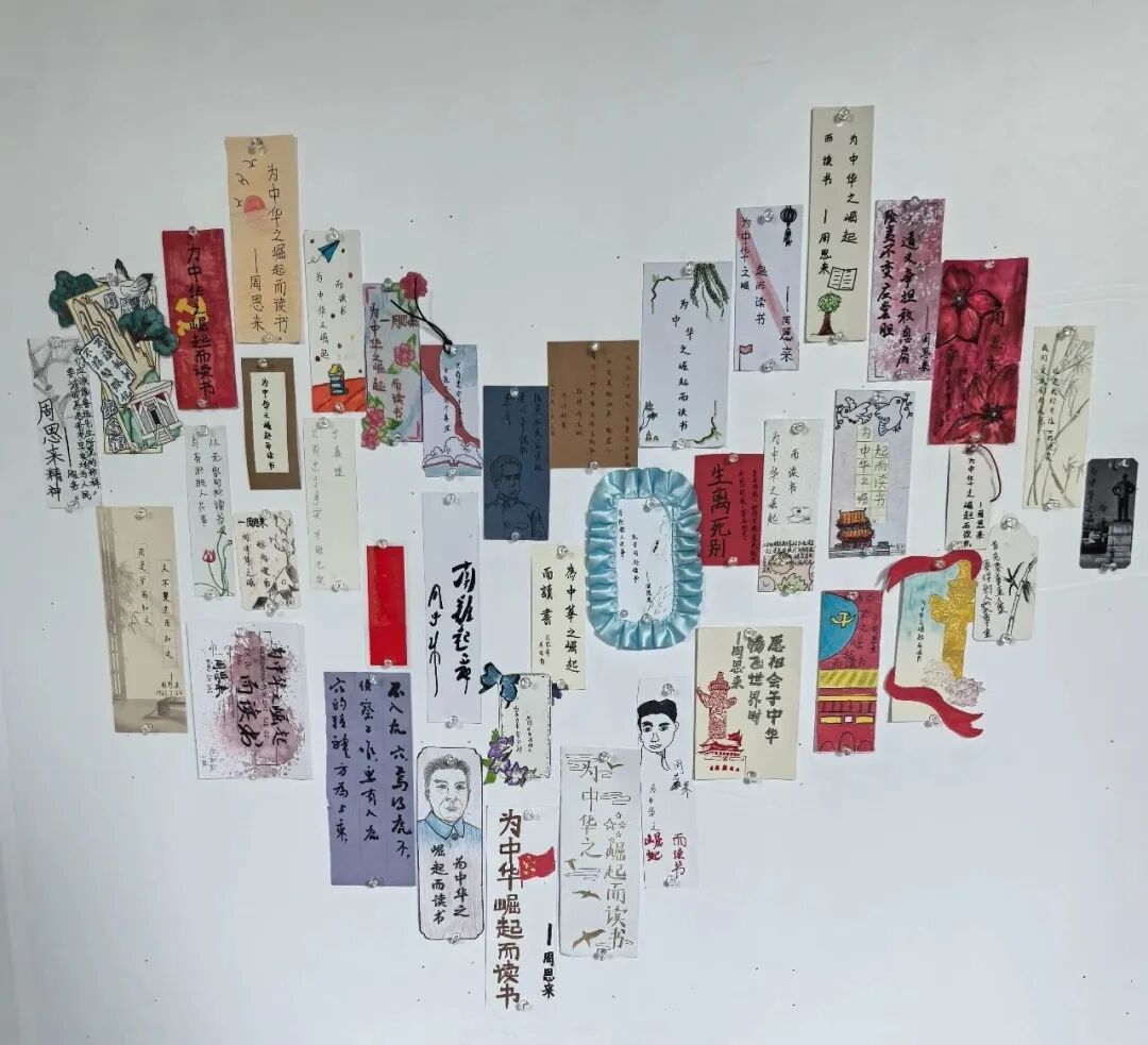 同学们通过阅读周恩来总理书籍,感悟周恩来总理精神,并亲手制作精美书签,将一句句名言抄录其上,时刻提醒自己“为何而读书”。