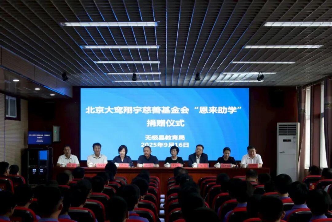 2025年9月16日,我会在无极县举行“恩来助学”捐赠仪式,向250名优秀学子发放23万元奖学金,并为3个“周恩来班”援建图书室及红色教育设施。我会理事长沈清、县委副书记严凤、周恩来邓颖超纪念馆馆长张彩欣出席,强调以教育优先战略助推无极教育高质量发展。