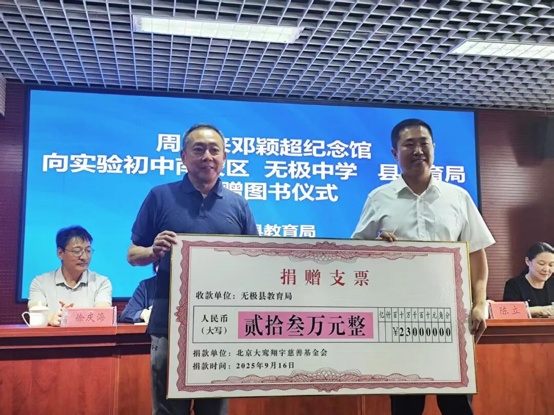 我会以“奖学金+红色教育”模式,为无极县教育注入长效动力。无极县政府将持续推进教育现代化,打造资源优质、特色突出的教育强县,让红色基因代代相传。