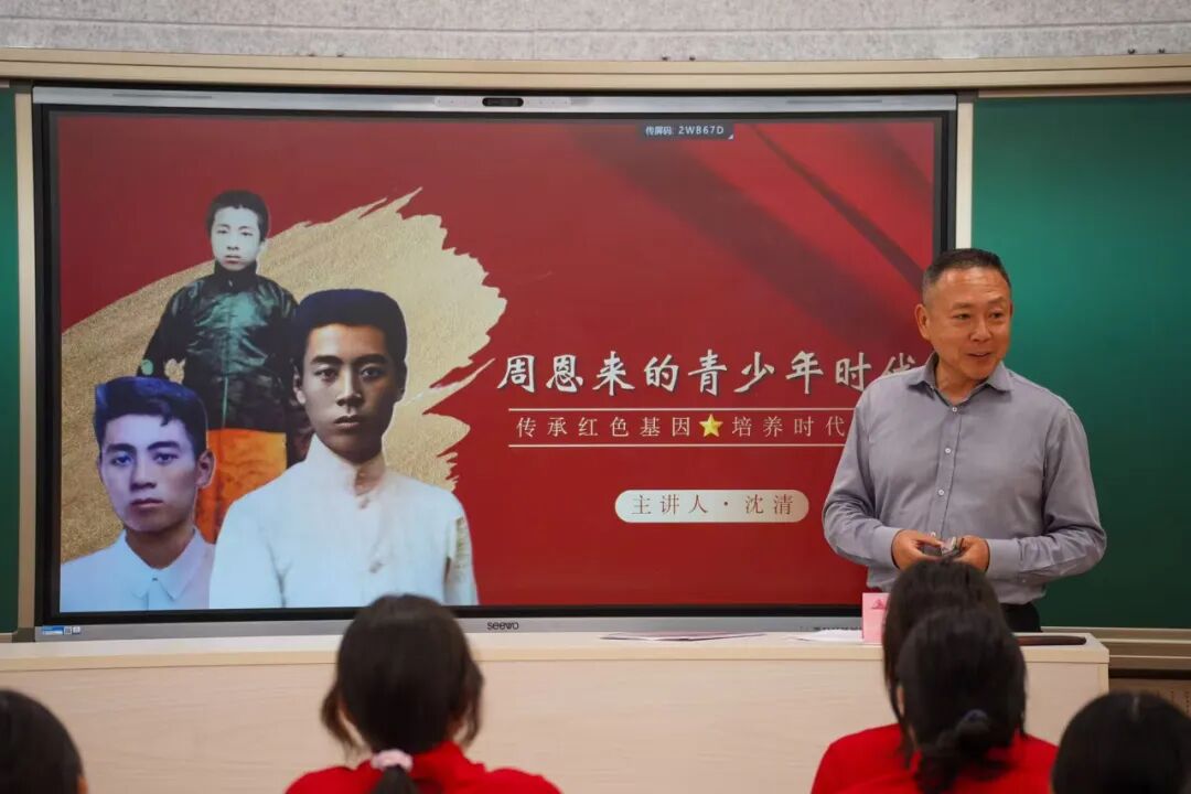 此次主题课程中,沈清理事长以周恩来总理青少年时期为主线,通过讲述周总理少年立志、青年求学以及投身救国之路的奋斗历程,让同学们深刻感受到周恩来总理坚定的理想信念和为人民无私奉献的精神。课程通过一幅幅真实历史图片和文物资料,让同学们仿佛穿越时空,亲身感受到那个波澜壮阔的时代。当讲到周恩来总理少年立志“为中华之崛起而读书”时,他呼吁当下同学们要继承伟人精神,迎合时代“为中华民族伟大复兴”而读书。