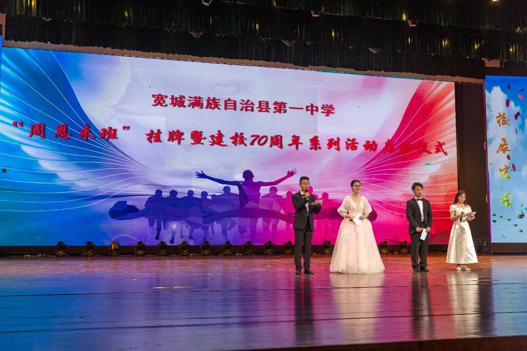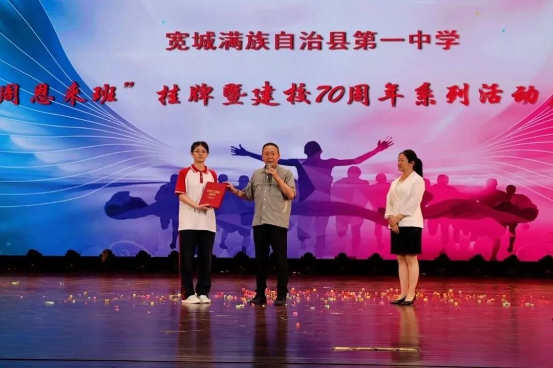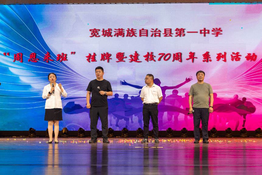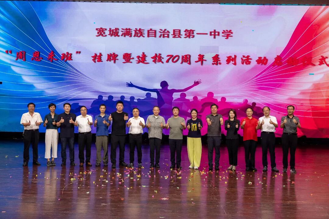 2025年6月29日晚,宽城满族自治县第一中学“周恩来班”挂牌暨建校70周年系列活动启动仪式在宽城教育园文化展演中心圆满举行。我会理事长沈清、副秘书长罗放等基金会一行与宽城满族自治县第一中学师生、校友代表齐聚一堂,共同见证了这场承载红色精神传承与学校发展新篇的盛会。