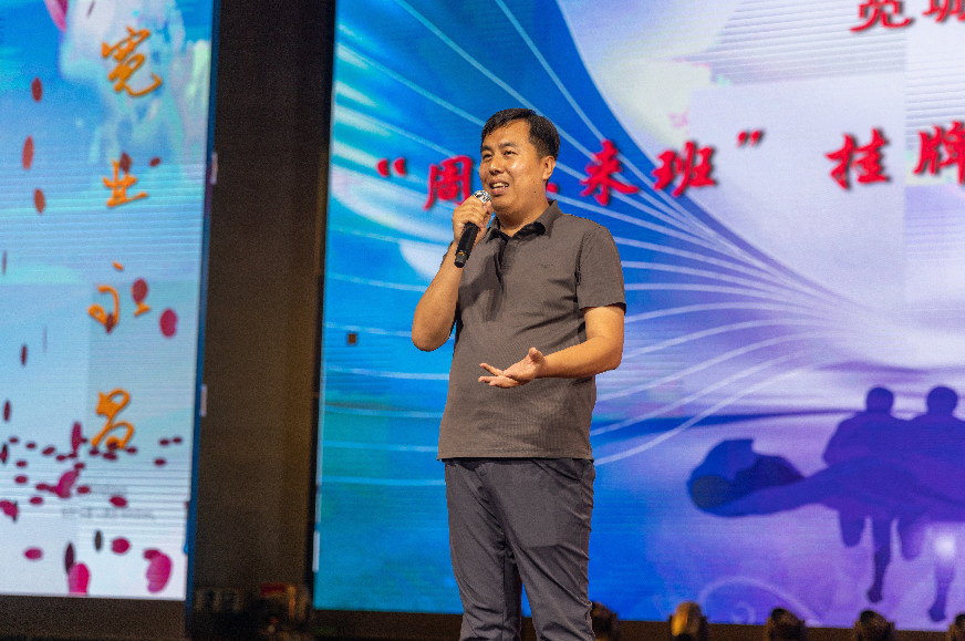 我会罗放副秘书长代表“周恩来班”网站向学校颁发“子网站开通上线证书”,进一步深化学校与周恩来精神传播平台的联动。校领导班子集体朗诵《继承发扬伟人精神 做幸福教育人》,抒发坚守教育初心、传承恩来精神的坚定信念。