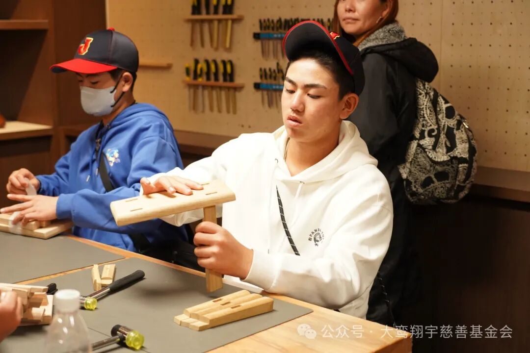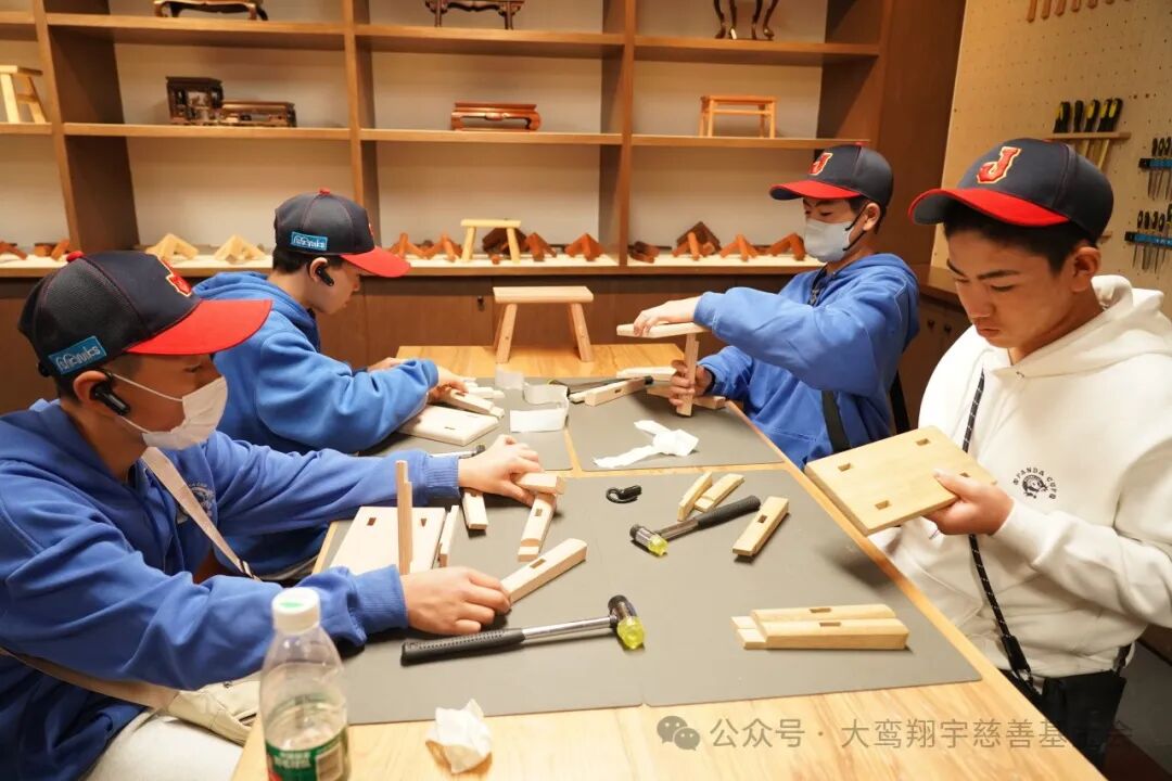 最后,球员们来到区式传统木作博物馆,在这里领略到中国传统榫卯木作技艺,并体验到亲自动手的乐趣,了解到如何运用榫卯技艺无需一根钉子就能制作家具,对中国的传统文化有了更为深刻的认知,对中国传统文化的博大精深由衷赞叹。