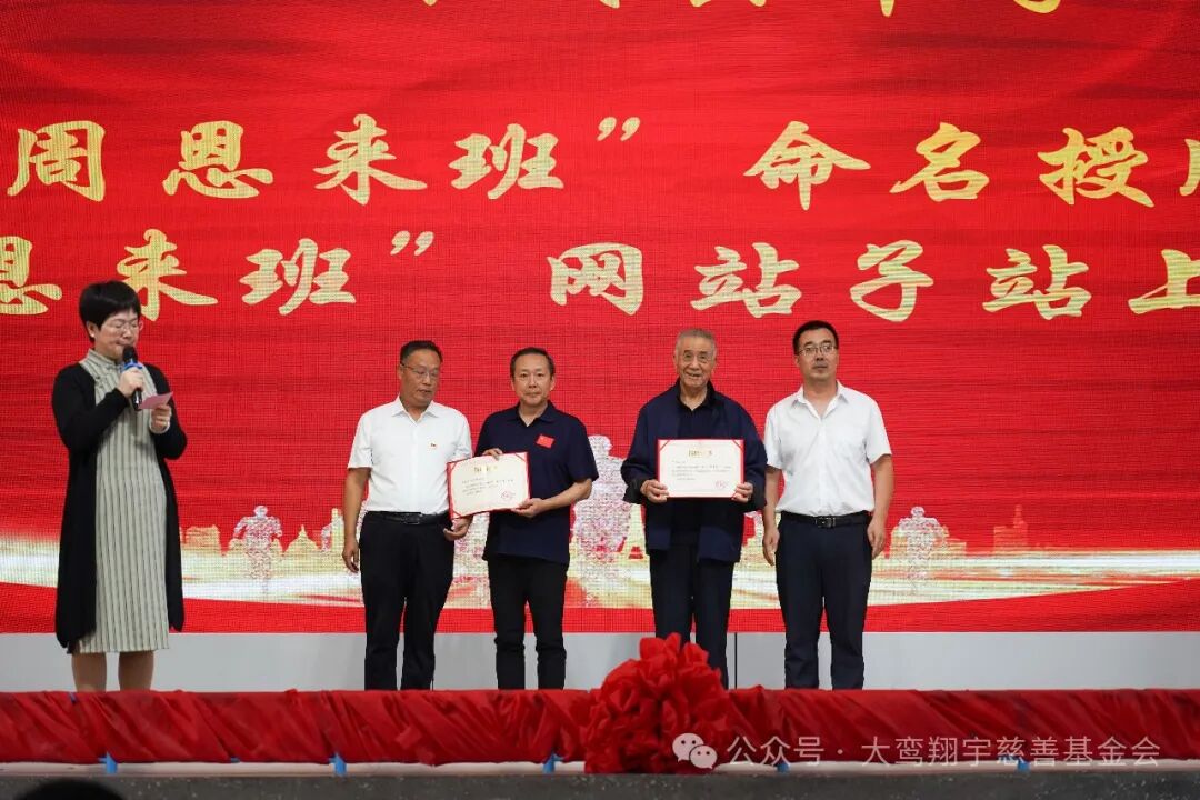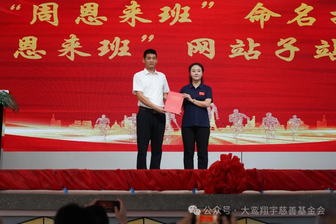 在众人的期待中,周恩来总理秘书、武警指挥学院原副院长纪东同志,六十三军原副政委、少将马清云同志为“周恩来班”授牌,学校校长闫利云和高俊峰受牌。