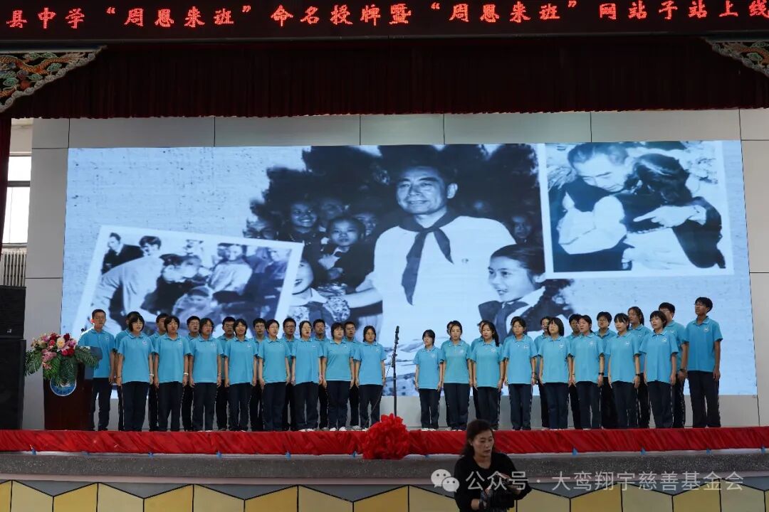 代县中学高一、高二学生齐唱周恩来班班歌《我和我们》,声情并茂地表演了情景剧《岭口会谈》,集体朗诵诗歌《您从这里走来》为周恩来班的启动授牌仪式现场点燃激情。