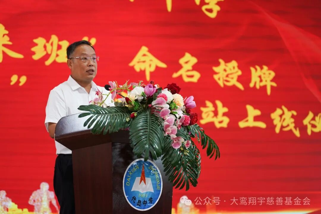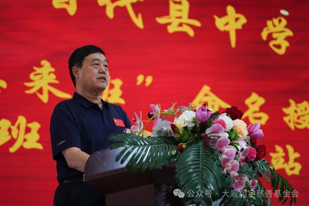 随后,代县政府副县长李学宇向嘉宾致欢迎词,感谢北京大鸾翔宇慈善基金会和纪东将军,马清云将军的大力帮助,并对首届“周恩来班”学生提出了殷切的希望。