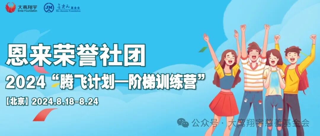 “腾飞计划—阶梯训练营”是恩来树人工程在高校阶段的重要实施载体,以实际行动呼应青年周恩来提出的“愿相会于中华腾飞世界时”的宏伟夙愿。本次活动为期5天,将于8月18日开始,至8月24日结束。通过组织高校中有志于国际问题和对外交往的学生社团参与相关国际组织的参访、实践,深化社团学生对国际事务的理解,增强他们的全球视野和跨文化交流能力,为将来相会于世界舞台,展现不断腾飞的中华民族打下坚实基础。
