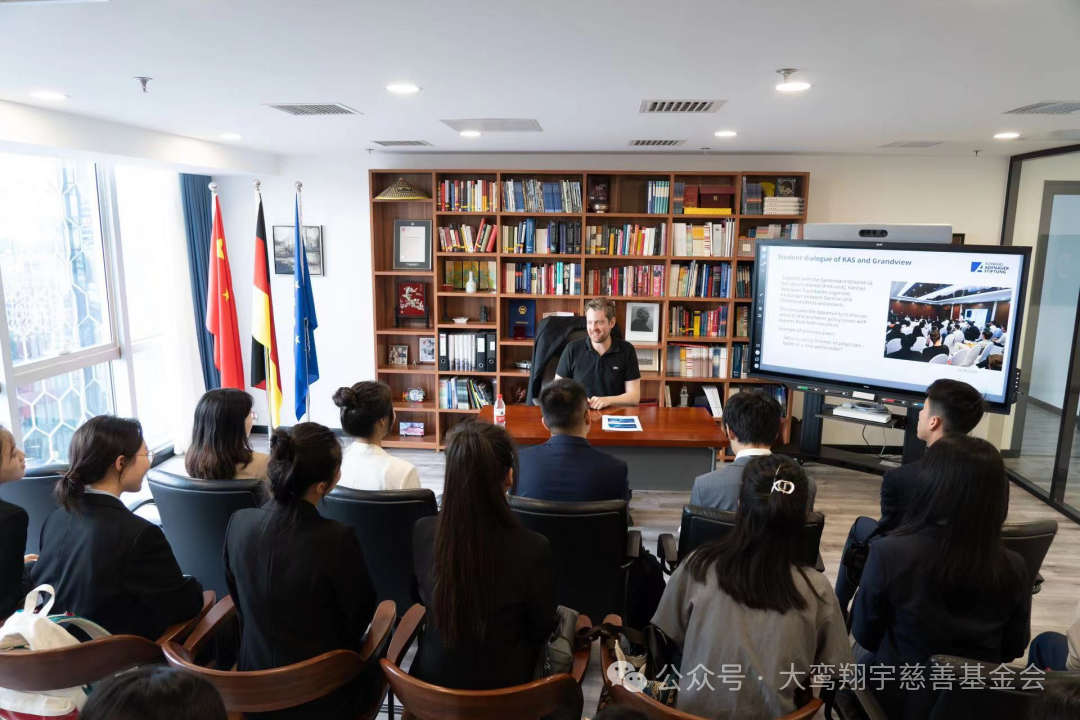 抵达德国阿登纳基金会(KAS)北京代表处后,训练营师生们受到了基金会工作人员的热情欢迎。随后,北京代表处首席代表Johann Fuhrmann 先生从基金会的历史发展、基本职能、运作架构、相关活动和合作项目等方面向训练营师生们介绍基金会的基本情况,同学们认真聆听、深入思考。