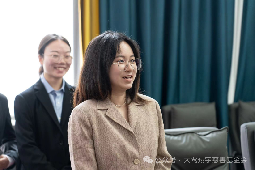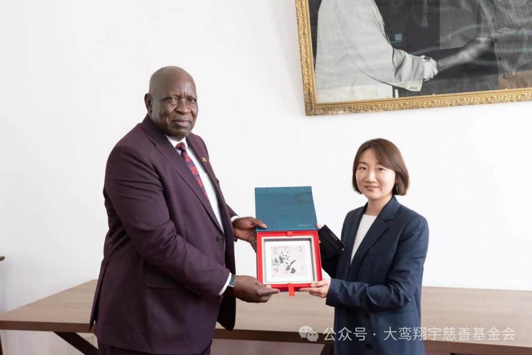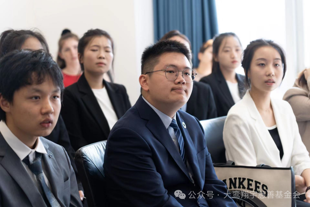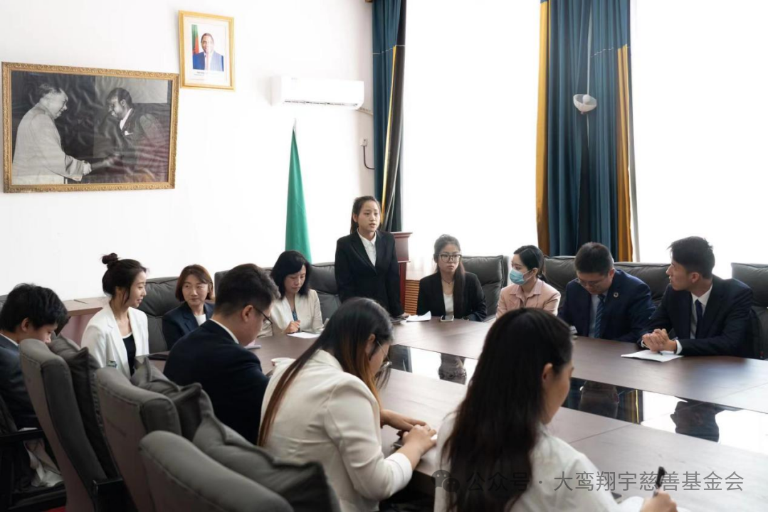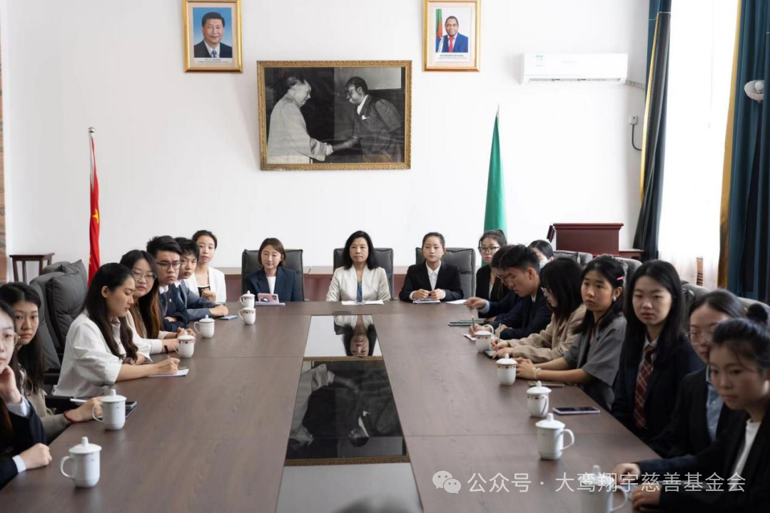 随后,北京大鸾翔宇慈善基金会代表肖媛女士进行致辞,向赞比亚大使馆对恩来荣誉社团“腾飞计划-阶梯训练营”活动的鼎力支持表达真挚的感谢,并向Lordwell Kalubankwa先生赠送了具有中国特色的蜀锦。肖媛女士介绍本次活动是在国家“加强国际组织人才培养,扩大国际组织人才储备战略”方针指导下,为传承弘扬周恩来总理外交思想和风范,由北京大鸾翔宇慈善基金会发起“恩来荣誉社团”项目中的实践活动,旨在助力社团学生增加外事外交阅历,助力高校培养具有家国情怀和专业才能的全球性人才,参观大使馆是帮助学生开拓视野和本次项目的重点活动之一。