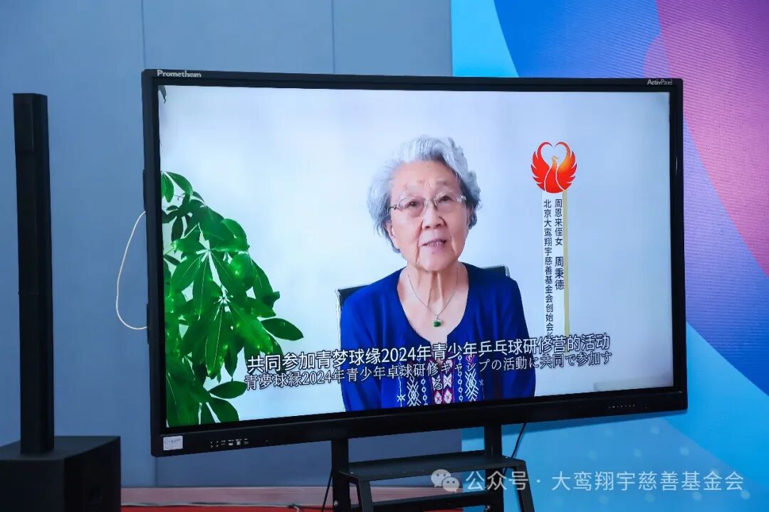 随后,北京大鸾翔宇慈善基金会理事长沈清,代表主办方向日本著名乒乓球运动员松崎君代颁发“青梦球缘特别顾问“证书,松崎君代作为日本乒乓球界的传奇人物,她的故事与中国紧密相连,她以精湛的球技和坚韧不拔的精神,赢得了中国观众的尊敬和喜爱,更与周恩来总理结下了深厚的友谊,成为中日友好交流史上的一段佳话。