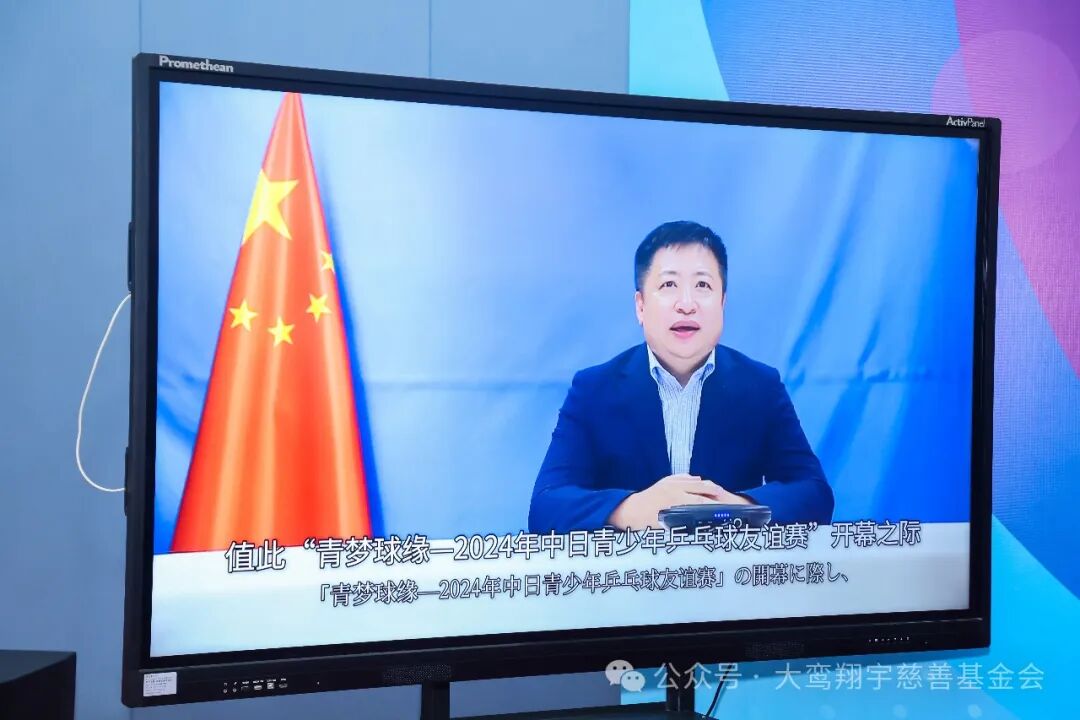 开幕式上,中国驻福冈总领事馆副总领事成岩、北京大鸾翔宇慈善基金会创始会长周秉德以视频的方式发来视频致辞,他们表示乒乓球运动为中日两国民间友谊打下了坚实基础,为两国建交起到了积极作用,周恩来总理曾多次接见过日本乒乓球运动员,鼓励他们“友谊第一比赛第二”,与松崎君代等日本运动员建立了深厚友谊,也传出了许多感人故事。江苏省与福冈县结为友好省县,32年来在各方面取得了丰硕成果,为两国人民带来福祉。几位领导对接下来中日青少年友好比赛皆予以鼓励,预祝活动圆满成功。