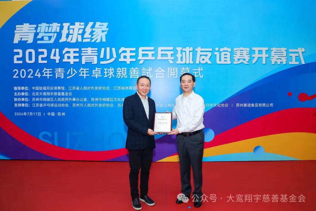 相城区人民政府副区长朱向峰向北京大鸾翔宇慈善基金会授牌“中日(苏州)地方发展合作示范区优秀合作伙伴”荣誉称号,此次授牌意义重大,鼓励了北京大鸾翔宇慈善基金会在中日两国民间友好发展上作出的成绩。相城区作为苏州市的重要组成部分,早在2020年4月,就获得了国家发改委颁发的中日(苏州)地方发展合作示范区,作为全国六个示范区之一,相城区所在的示范区是江苏省唯一且是全国六个示范区里面积最大的。本次活动也获得到了苏州市、相城区政府和相城区外办的大力支持与协办。沈清理事长表示,有幸获得优秀合作伙伴的称号,将以此次活动为契机,未来共同将这一活动做成长期项目,在中日文化和体育民间交流方面开展更多活动。