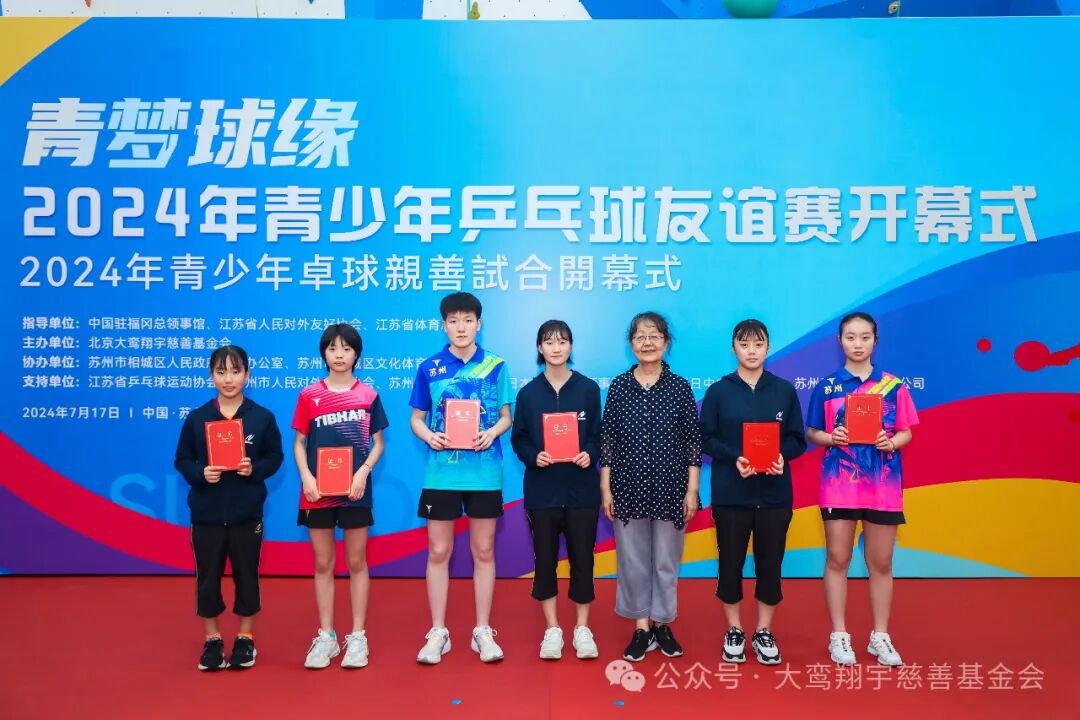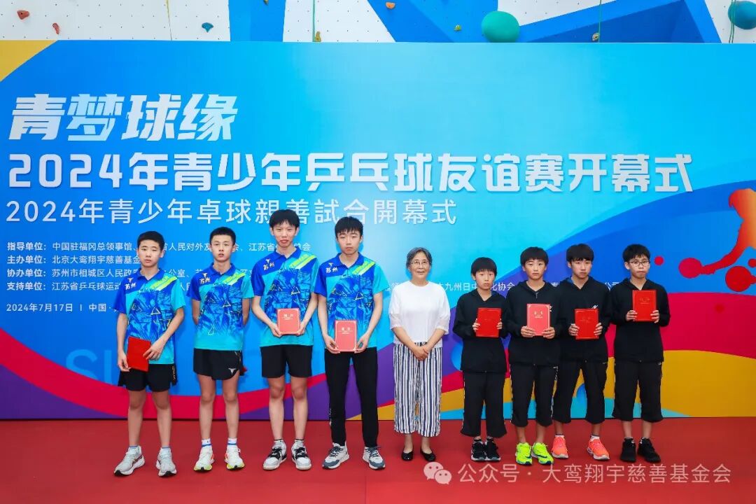 据北京大鸾翔宇慈善基金会执行副秘书长梁洁介绍,本次开幕式到场的中方嘉宾有:中国乒乓球协会理事、原国家体育总局乒羽中心副主任陆元盛,中国友好和平发展基金会副秘书长董思嘉,北京大鸾翔宇慈善基金会理事长、周恩来总理侄外孙沈清,中国宋庆龄基金会理事、中日友好协会原会长孙平化之女孙晓燕,中国社会科学院历史研究所副所长、郭沫若之女郭平英,清华大学体育产业发展研究中心肖燕,江苏省人民对外友好协会副会长钱文华,江苏省体育总会副会长范金华,江苏省乒乓球运动协会常务副会长陶新,苏州市人民政府外事办公室副主任洪军,苏州市体育局副局长俞峰,相城区人民政府副区长朱向峰,相城区人民政府外事办公室主任吕芳,相城区文化体育和旅游局副局长袁小毅,周恩来纪念地管理局党委委员、副局长谭建华,淮安市人民对外友好协会秘书长何桂荣;日方到场嘉宾有:日本驻上海总领事馆新闻文化部部长长谷川绫子,福冈县政府上海事务所首席代表龟石泰斗,日本福冈县青少年乒乓球访华团领队石田弘树等。本次活动还特别邀请到日本著名乒乓球国手、世界冠军松崎君代女士作为北京大鸾翔宇慈善基金会特别顾问,专程从日本赶来参加开幕式,并与陆元盛先生一起和两国乒乓小将做了亲切交流和球技指导。