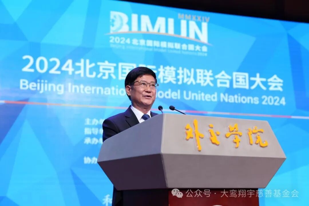 2024年5月23日,以“和平·发展·共赢”为主题的2024北京国际模拟联合国大会(Beijing International Model United Nations 2024),在北京外交学院沙河校区拉开帷幕,此次大会由外交学院主办,由外交部、教育部、共青团中央、中国联合国协会共同指导,来自全国150余所知名大、中学校约700名中外优秀学子将在四天的会期中模拟不同国家代表的角色,共同探讨国际挑战和全球问题,传递和平、发展、共赢理念,为世界和平与繁荣贡献青年之声。我会创始会长周秉德、理事长沈清受邀出席了本次大会。