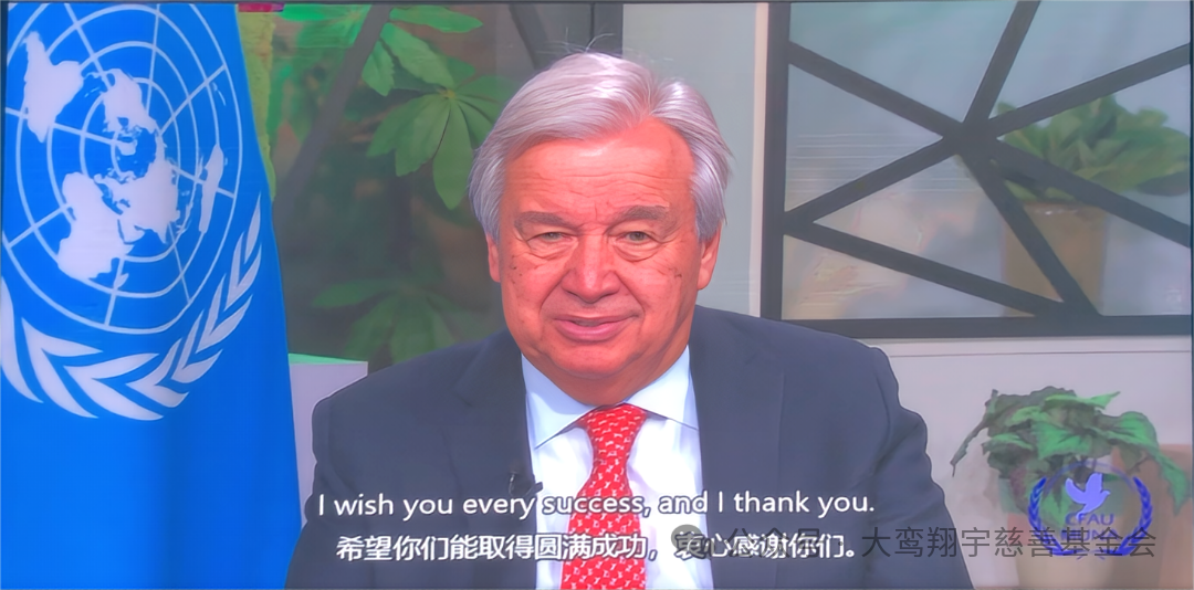 随后联合国秘书长古特雷斯、联合国驻华系统协调员常启德以视频的方式分别向大会发表祝贺。