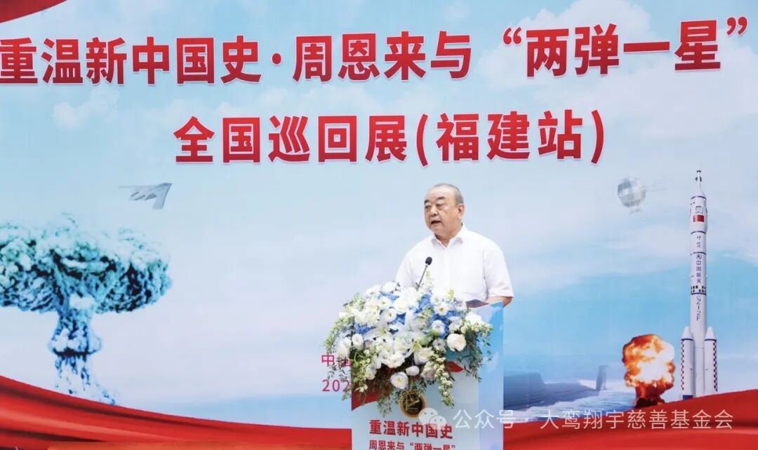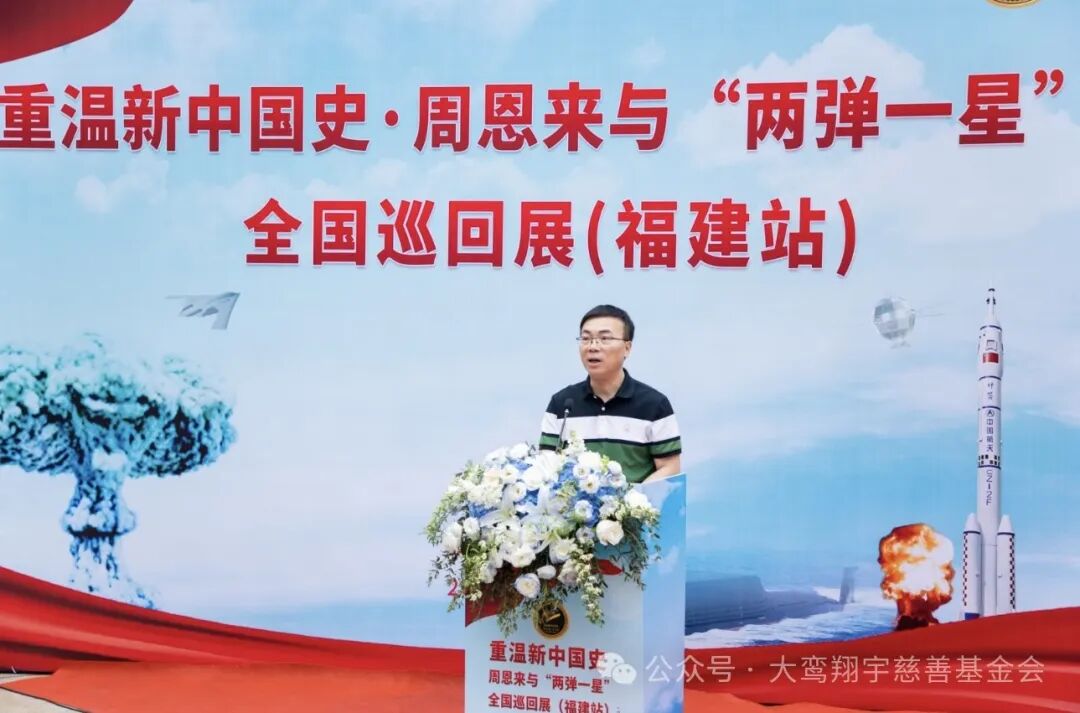 由中华人民共和国国史学会、中国核工业集团有限公司、中国航天科技集团有限公司、中国航天科工集团有限公司、中国工程物理研究院、北京大鸾翔宇慈善基金会、中共福建省委党史研究和地方志编纂办公室、福建省关心下一代工作委员会、福建省军区共同主办的“重温新中国史——周恩来与两弹一星全国巡展·福建站(首站)”于4月24日在福建省革命纪念馆开展。福建省委党史研究和地方志编纂办公室主任刘大可,中华人民共和国国史学会秘书长张星星,我会会长周秉德、国史学会两弹一星专家谢东强等领导、嘉宾共200余人出席本次活动。