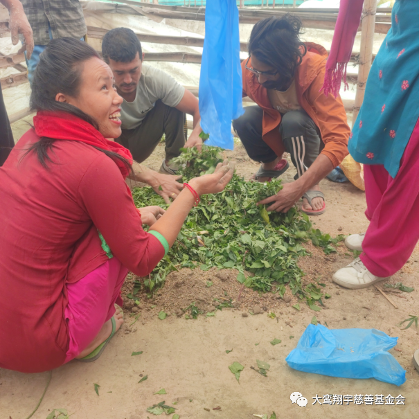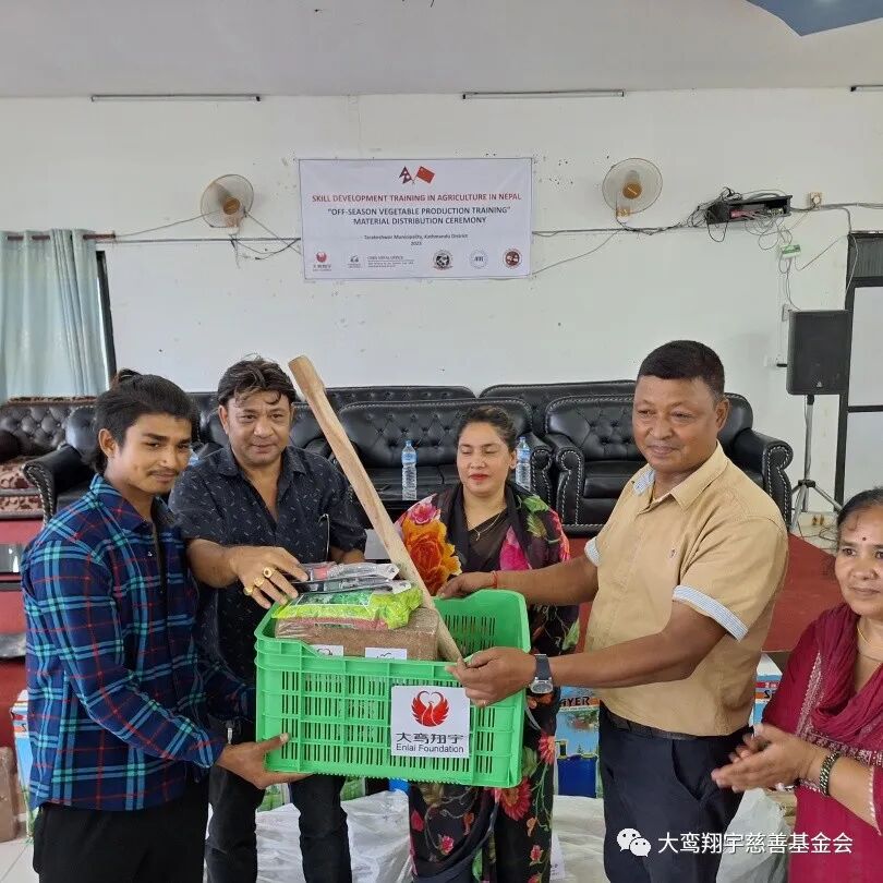 向尼泊尔青年培训者发放农副产品