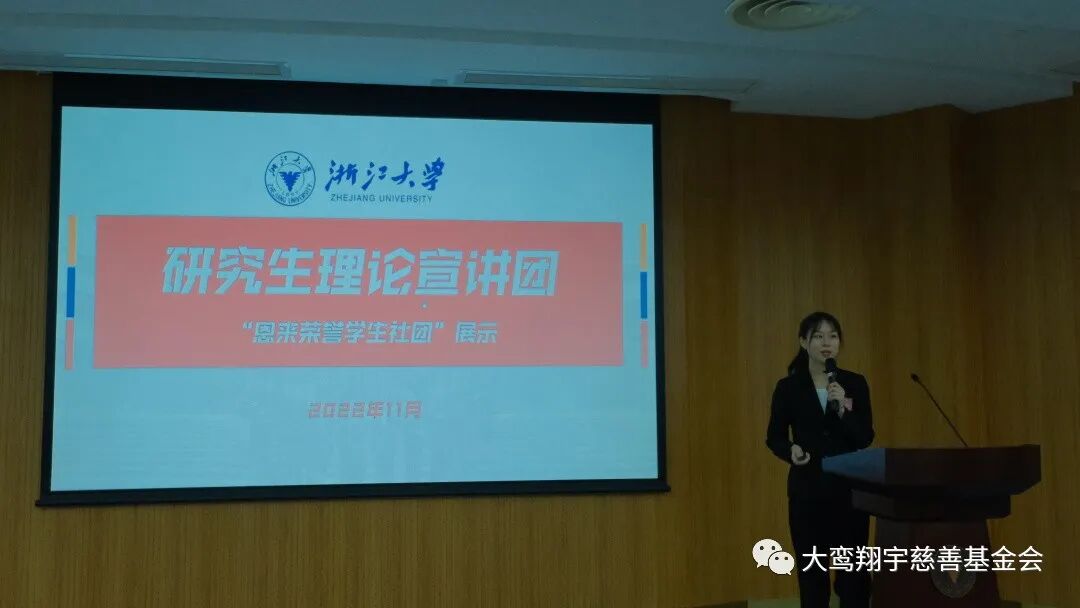 2022年11月25日,浙江大学第二届“周恩来班”、“恩来荣誉学生社团”表彰大会在浙江大学紫金港校区蒙民伟楼举行。浙江大学党委副书记朱慧、北京大鸾翔宇慈善基金会执行副秘书长梁洁(线上)参会并致辞。浙江大学党委学生工作部副部长张川霞、浙江大学校团委副书记杨宗银、浙江大学教育基金会副秘书长徐瑞君、北京大鸾翔宇慈善基金会代表以及获奖班级、社团分管负责人、相关老师、学生代表等出席了活动。