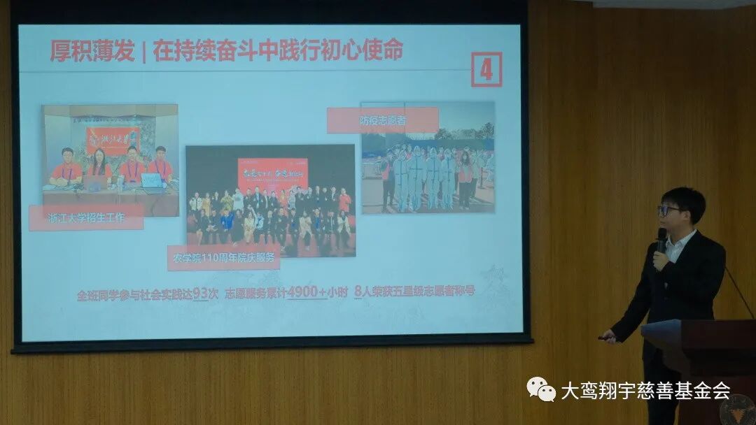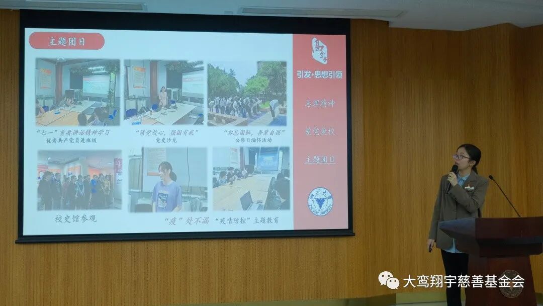 梁洁首先代表我会向获奖的班级和社团表示祝贺。并表示,“浙江大学教育基金会恩来基金”自实施以来,很高兴地看到所有工作都在严谨、有序地开展。同学们在校党委学生工作部、校团委及浙大教育基金会的指导下,开展了很多健康向上、形式多样、内容丰富的主题活动。衷心希望在浙江大学强有力的学术研究与社会资源的助力下,在各级领导部门的帮助下,越来越多的同学能参与到项目中来并从中受益。