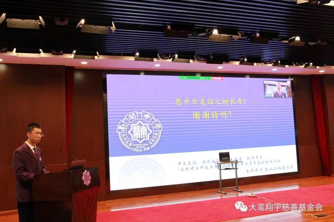 2022年,中日邦交正常化迎来了50周年。昨天,在天津市人民对外友好协会、日中协会、北京大鸾翔宇慈善基金会、创价学会等主办单位积极协调下,天津市南开中学携手日本创价学园共同举行了“中日友谊,源远流长;青年使者,托举希望-庆祝中日邦交正常化50周年暨中日青年友好交流活动”。活动以视频会议的形式举行,约180名师生代表参加了本次活动。