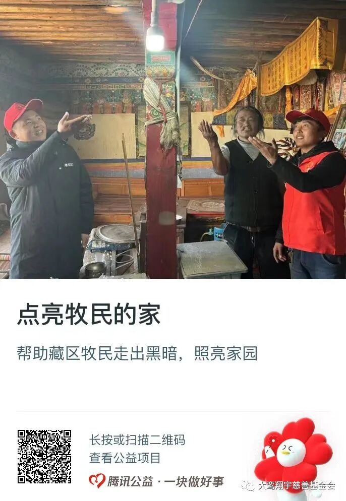 西藏那曲市,中国海拔最高的城市,位于西藏北部,青藏高原腹地,这里含氧量低,人口稀少,是西藏发展较为落后的城市之一。电是牧区的重要基础设施,牧区通电对牧区经济发展以及提高牧民生活水平至关重要。但是由于地域广阔,牧民居住分散,在供电上存在很多的困难,还有五分之一的偏远地区因受技术制约等原因电网无法触达。2021年9月,我会携手国家电网浙江省电力有限公司绍兴供电公司启动“点亮牧民的家”公益项目,并向西藏那曲市比如县热撒村20户家中有老人、病人和孩童等需要改善用电条件的家庭捐赠了20台光伏发电设备。目前,项目计划从试点期向深耕期与扩大期进展,帮助藏区更多牧民切实改善用电品质,将光明遍布整个草原!