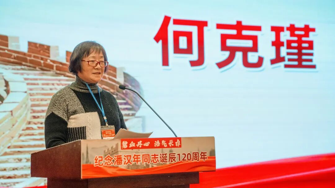 大会最后环节嘉宾自由发言中,党史研究专家李海文分享了她在研究党史中接触到的有关潘汉年的资料。