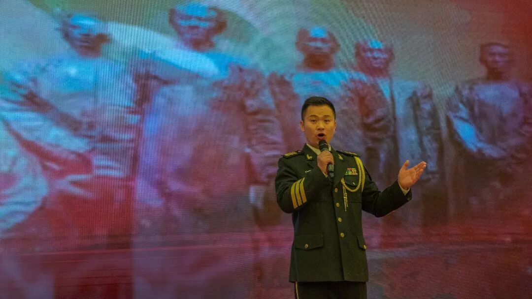纪念活动中,青年演员通过一首歌曲《祖国不会忘记》,来表达对潘汉年同志的的崇敬之情。