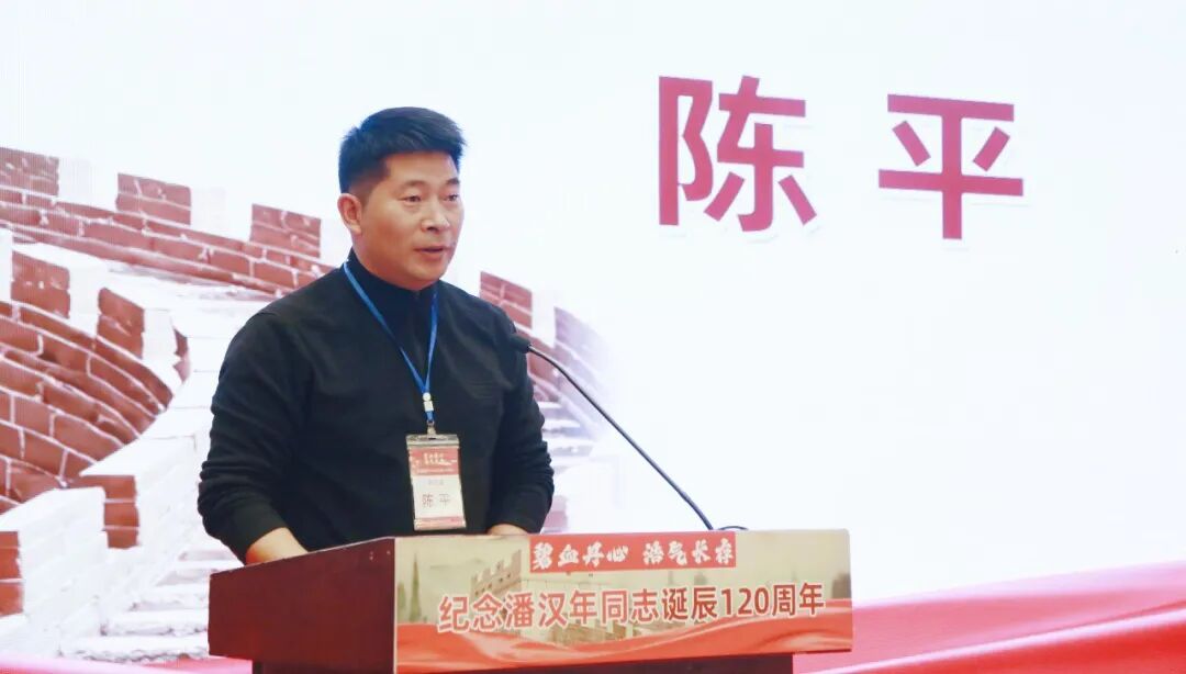 潘汉年同志家乡代表陈平在发言中,表达了家乡人民对潘汉年深切的缅怀和思念,并表示家乡人将永远铭记并传承他的忠诚与担当,坚守与信念。