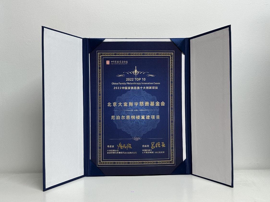 详情:北京大鸾翔宇慈善基金会“恩来赋能计划-尼泊尔阿南达库迪教学楼重建项目”获首届中华家族慈善论坛“2022中国家族慈善十大创新项目”殊荣。