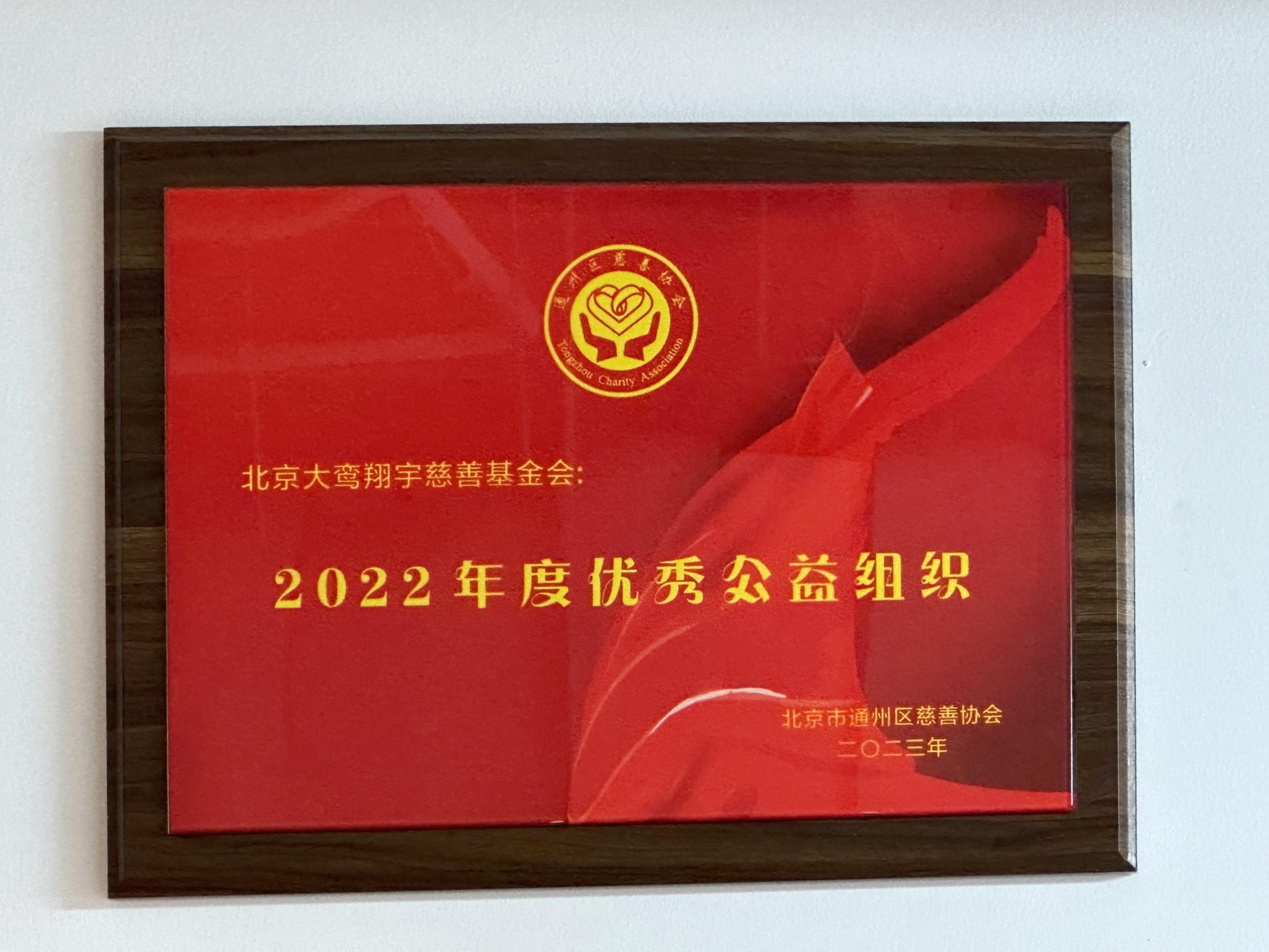 详情:北京大鸾翔宇慈善基金会被北京市通州区慈善协会评为“2022年度优秀公益组织”,特发表彰证书及牌匾。