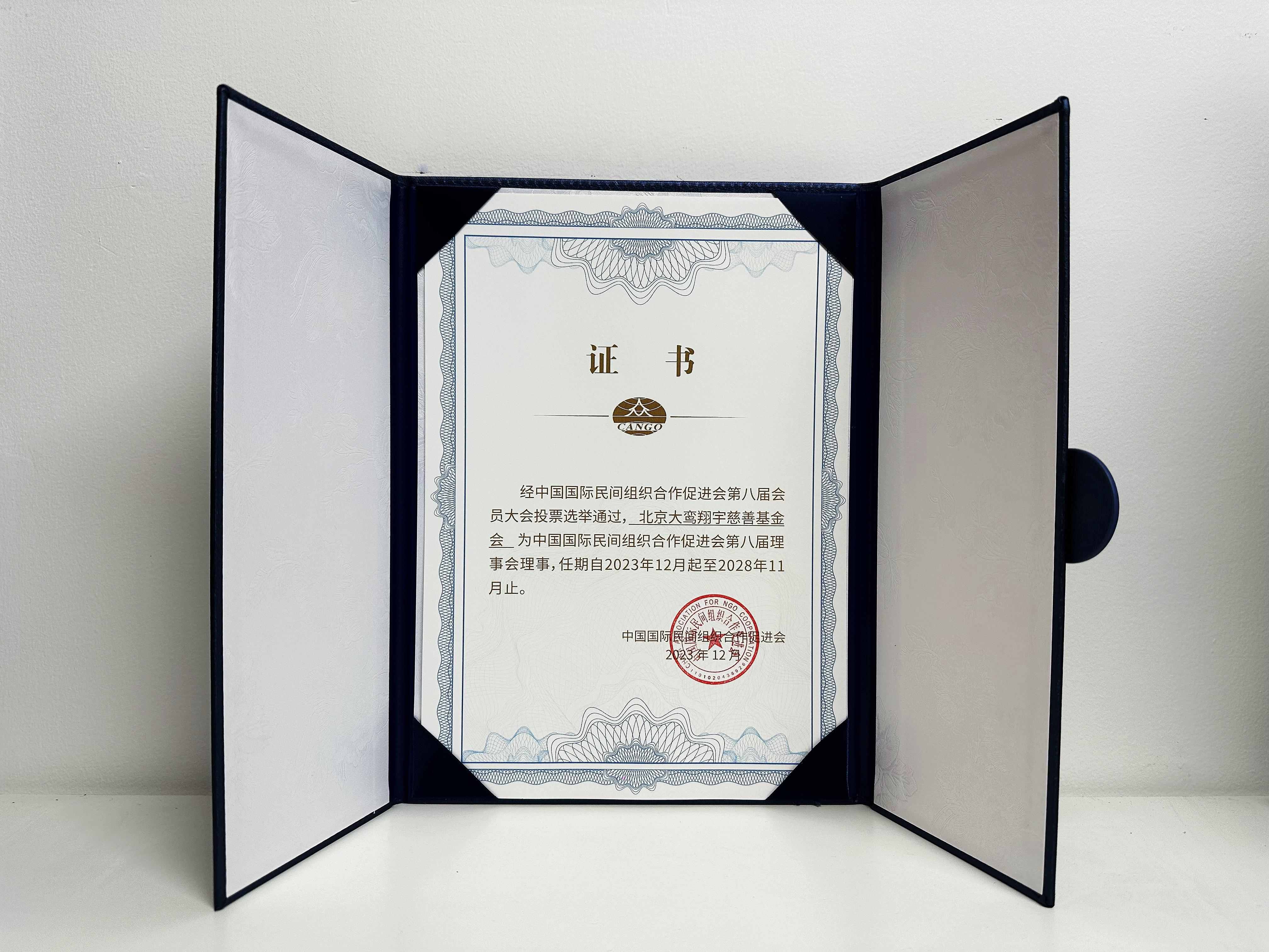 详情:经中国国际民间组织合作促进会第八届会员大会投票选举通过,北京大鸾翔宇慈善基金会为中国国际民间组织合作促进会第八届理事会理事。