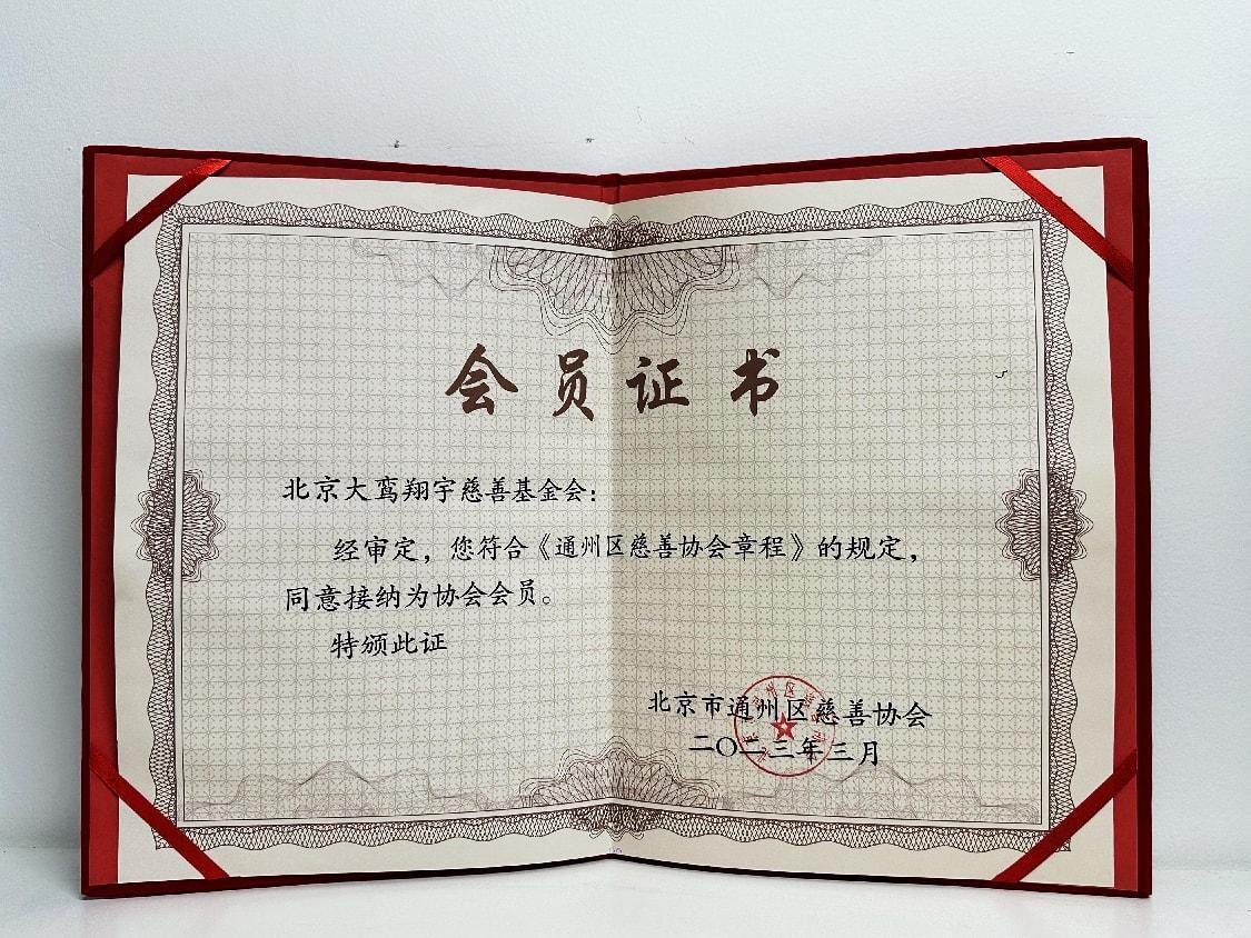 北京市通州区慈善协会“会员证书”