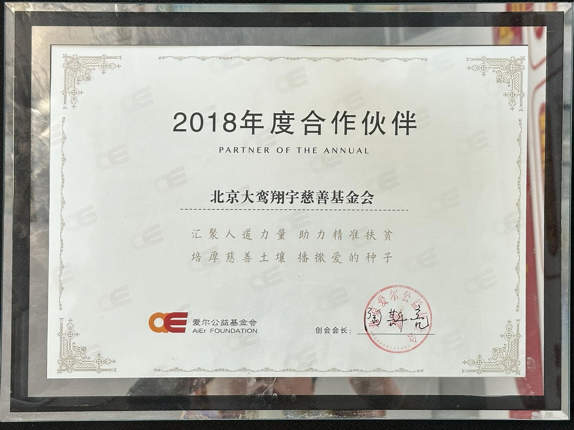 详情:由北京市红十字会、爱尔公益基金会共同举办的“爱如阳光”红十字·爱尔之夜慈善活动上,北京大鸾翔宇慈善基金会被评为“2018年度合作伙伴”。