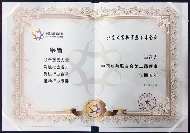详情:北京大鸾翔宇慈善基金会当选中国慈善联合会”第二届理事单位“,任期五年。