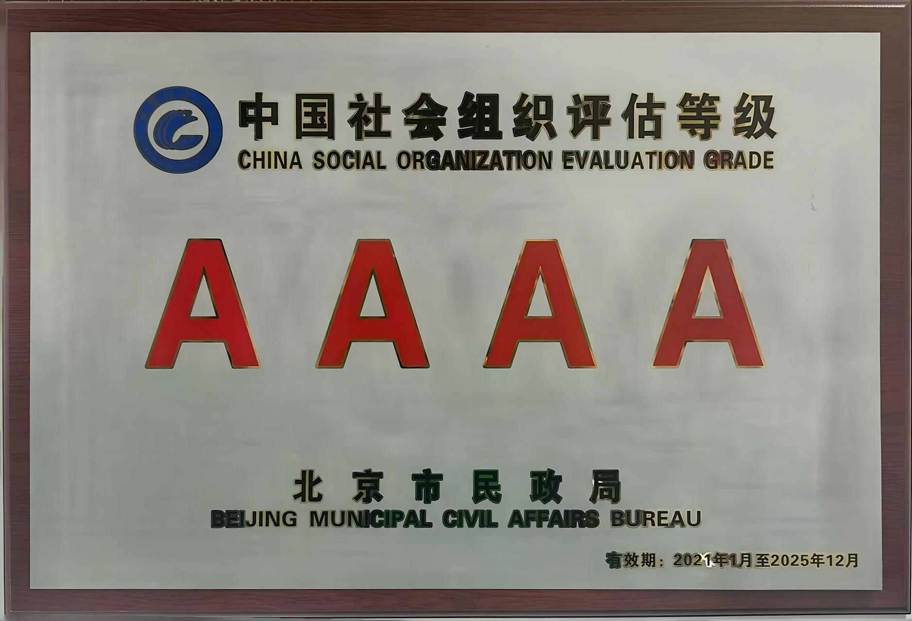 详情:北京大鸾翔宇慈善基金会二次评估,获得北京市民政局颁发的“北京市4A级社会组织”。