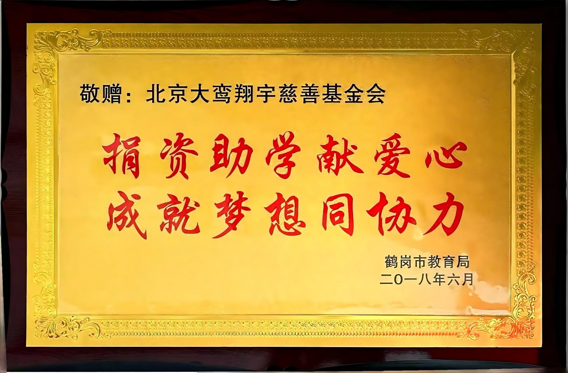 “捐资助学,大爱无疆”荣誉牌匾